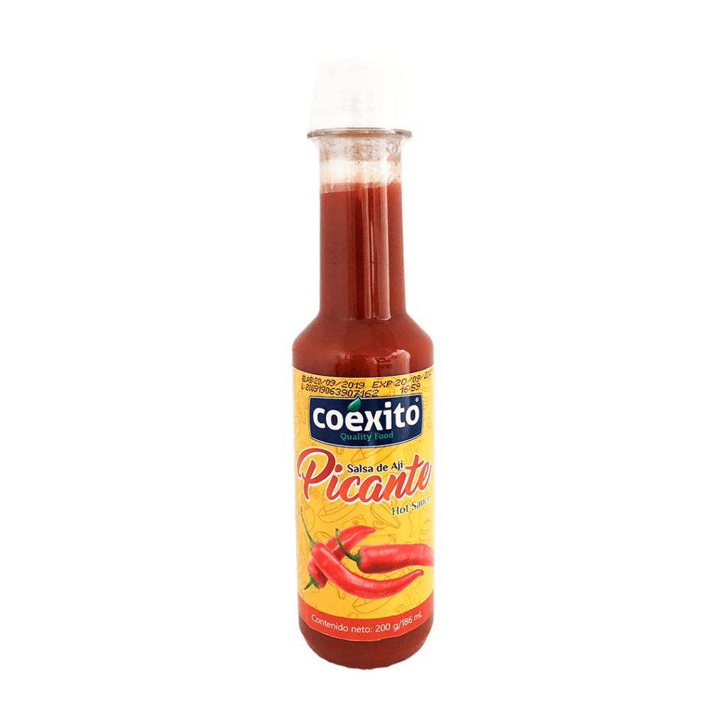 Salsa de Ají Picante Coéxito Salsa de ají picante para darle un sabor especial a las pastas peruanas. Dale un toque picante a las sopas tradicionales latinoamericanas, para hacer un delicioso curry, acompañar las empanadas, yucas y patacones y mucho más. 186ml.* *Compra en tienda