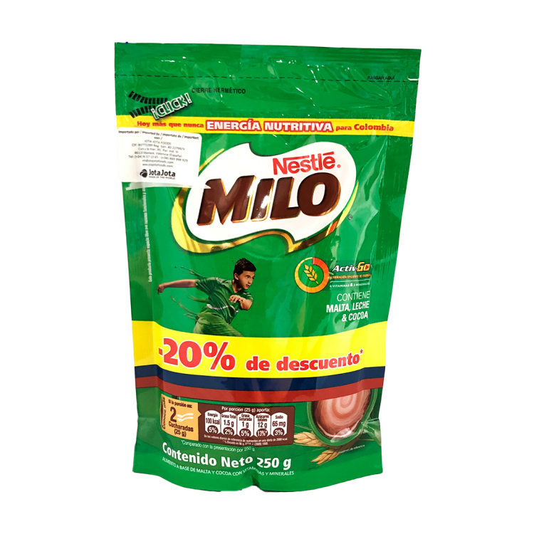Milo colombiano Nestle Alimento a base de malta y cocoa con vitaminas y minerales. 250g.* *Compra en tienda