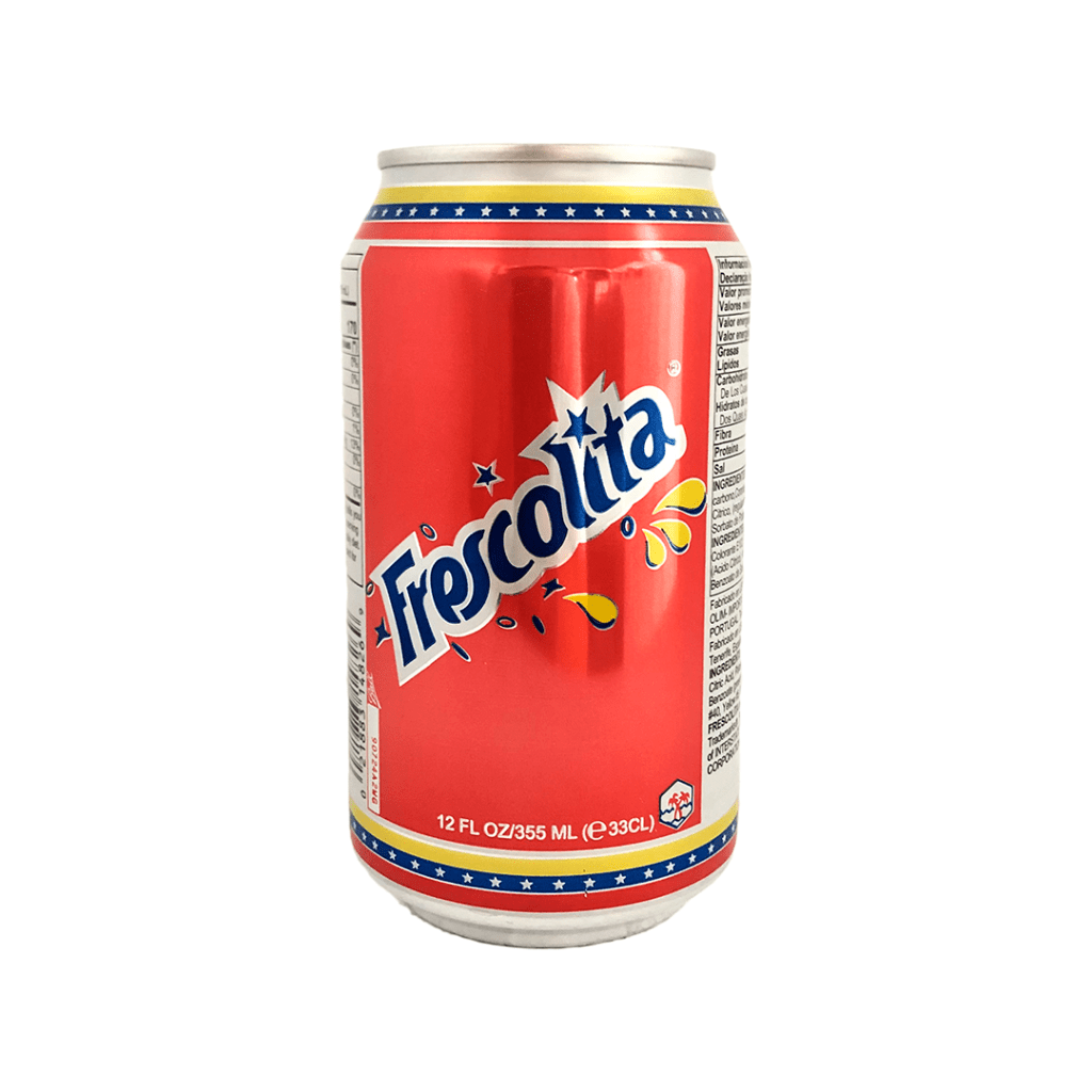 Frescolita Refresco venezolano de color rojo. Al contrario de muchas bebidas de América, no es muy azucarado. Su sabor es muy similar a la crema de soda americana. 355ml.* *Compra en tienda